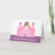 A greeting card to wish the little princess a happy birthday! This card has a cute princess which is wearing a white gown and a pink tiara who in the middle of a pink cardboard castle. Color platette of sweet pink and purple which is fitting of royalty. Text reads "Happy Birthday Princess!"