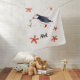 Nautical Baby Blanket featuring a whimsical Puffin with Sea Stars. Name can be customized.