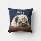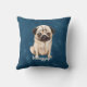 Cute Pug custom text blue-brown modern Throw Pillow