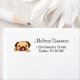 Simple cartoon illustration of a cheerful pug dog, tongue out, peeking from behind a divider. Only its head and front paws are visible. One paw is raised in a wave gesture. Customize with your address.