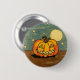 This cute Halloween design features a jack-o-lantern pumpkin against a starry sky with a full moon. Image has a worn texture for a vintage look.