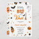 Plain white envelopes are included with paper invitations and will come to fit the invitation size you select. If you don’t need the envelopes, you may choose to not receive them by selecting the dropdown below "Envelopes" and choosing "None." If you’d like to have a design on your envelopes, you can browse all of these available envelopes to find the design that complements your Cute Pumpkin Boo Halloween Baby Shower Invitation.