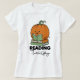 An adorable pumpkin reading a book on top of stacked books illustration with a funny reading saying that says "Reading is my therapy" perfect for book lovers, book readers, librarians, fall lovers, teachers, and anyone who loves reading.