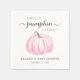 Cute napkins for your baby girl shower featuring "A Sweet Little Pumpkin Is On Her Way" written in simple grey typography and a stylish script with swashes, and a pastel pink watercolor of a pumpkin.