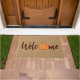 Cute Pumpkin Welcome Wordart On Faux Jute Textile Doormat