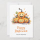 Cute watercolor Halloween card featuring funny pumpkins and ghosts. Easily personalize this Halloween card with your family name and text.