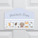 Brighten your child's room with this adorable custom name door sign featuring a lineup of cute dogs on a soft blue background. Ideal for dog lovers, this high-quality sign can be personalized with any name, making it a special and thoughtful addition to any room decor. Perfect for bedrooms, nurseries, or playrooms, this whimsical door sign brings a personalized and joyful touch to your child's space.