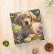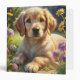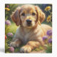 A cute puppy in flower garden