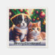 Cute puppy and cat under Christmas tree Napkins