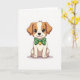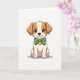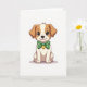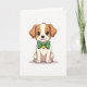 Designed with a sweet cartoon puppy centered on a bright white background, this St. Patrick’s Day card keeps the scene simple and focused. The little dog faces forward with a steady stance, as if it’s waiting for a friend to lean in closer, and its big brown eyes shine with a gentle, inviting look 💚. Creamy white fur is paired with warm caramel patches on the floppy ears and around the eyes, giving the face extra character without crowding the space. Around its neck sits an emerald green bow tie patterned with tiny white shamrocks, finished with a small golden heart charm that reads like a quiet sign of affection ☘️. Any greeting text would sit above the puppy in matching green, with a smaller line below in softer gray to keep attention on the pup. A faint shadow under its paws anchors it to the page while the rest of the background stays open and airy. The bow tie’s shamrock pattern and the little gold heart catch the light against the white space.