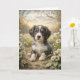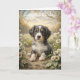 A cute puppy in flower garden. Suitable for a birthday card for anyone. Feel free to change text