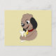 Postcard with an illustration of a cute little brown puppy with a bone; illustrated by Radka Kavalcova / MaxiHarmony