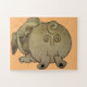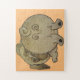 The cute little brown pug on this childrens puzzle is an original color pencil drawing. The little pug is play bowing and being a playful puppy. The fun pug illustration is an original design. The cute dog character is set against a soft peach background and is a large piece jigsaw that's great for keeping the children entertained.