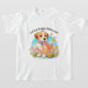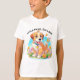 A t-shirt with a picture of a cute puppy sitting amongst the flowers. He looks very happy to be surrounded by flowers and butterflies.The perfect gift to give those who love puppy dogs. The slogan is 'Little paws, Big love'. Contains generative content.