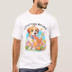 A t-shirt with a picture of a cute puppy sitting amongst the flowers. He looks very happy to be surrounded by flowers and butterflies.The perfect gift to give those who love puppy dogs. The slogan is 'Little paws, Big love'. Contains generative content.