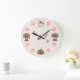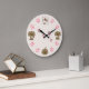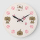 Cute Puppy Dogs, Pink Paw Prints and Pink Hearts Large Clock