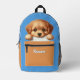 Carry your essentials in style with our adorable backpack featuring a charming puppy playfully peeking out, paws showing, and a paper in his mouth - the classic 'eating homework' mischief. Make it uniquely yours by adding your custom name or text. This backpack combines whimsy and practicality, perfect for showcasing your personality on the go.
