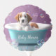 Cute puppy in a bathtub with bubbles, baby shower balloon