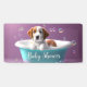 Cute puppy in a bathtub with bubbles, baby shower banner