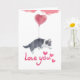 Send a sweet message of love with this adorable greeting card featuring a cute puppy holding a heart balloon.
