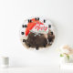 Cute Puppy Pug in a Red Santa Hat Christmas Large Clock