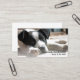 This business card front features a replaceable photo of cute black and white puppy laying down. Personalize the template, remove any text or use the edit design tool to select a font style, size, and color you prefer. Keep or replace the puppy photo with a horizontal image to meet the need of promoting your business. Use the QR code to send potential customers to referrals, reviews, photos or other business related link. Photo by Patricia AZ Phillips.