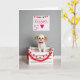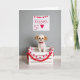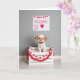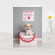 This heartwarming card features a fluffy little puppy, likely a Shih Tzu, sitting sweetly inside a white wooden crate. The pup gazes forward with big, soulful eyes that instantly capture attention. The crate is decorated with red and white pom-poms, tiny hearts, and shiny red tinsel, creating a festive Valentine’s look. Above the puppy, a white sign reads “kisses 5¢” in bold red letters with a small heart, hanging against a soft gray wall. A garland of red and pink heart cutouts drapes overhead, adding to the romantic mood. Gentle lighting highlights the puppy’s soft fur and the textures of the decorations, while the warm wooden floor grounds the scene. A bright red collar completes the design, making this card a sweet and loving way to share Valentine’s Day cheer. ❤️💌🍫