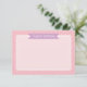 A stylish thank you / note card that includes a custom monogram banner, pink, purple, and white colors, polka dots, and a framed space for a handwritten message.