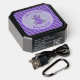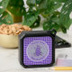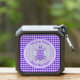 This awesome speaker features a graphic image of a cute purple baby bee with black legs and beady eyes. He has a lavender colored fuzzy body with purple stripes and cute purple antennae on his fuzzy head. His delicate little wings have a pale blue mottled pattern on them.