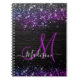 Cute purple black faux glitter monogram notebook