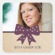 Sweet and charming Cute Bow Graduation Stickers featuring a whimsical polka dot purple bow and faux paper texture background. Easy to customize, simply add a photo and your personalized text in the text fields provided.