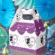 This cute purple hearts cat couple wedding gable favor box featuring 2 cats, the bride cat is wearing a purple heart collar and a white wedding veil and the groom cat with a purple heart collar and top hat with a purple band surrounded by floating purple hearts topped with a purple colored curtain with white bows!