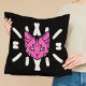 Cute Purple Cat On White Stripes Black Modern Throw Pillow