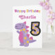 Cute Purple Dinosaur 5th Birthday Card