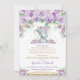 Cute Purple Floral Elephant Baby Shower by Mail Invitation