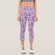 Cute purple flower pattern capri leggings