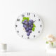 Cute purple grapes kitchen fruit decor large clock