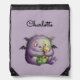Cute Purple Green Fluffy Monster Buddy Drawstring Bag
