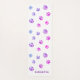 Show your love for animals with this cute and colorful paw print patterned yoga mat featuring purple, pink and blue paw prints over a white background. Customize it with your name or phrase.