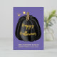 Cute Purple Pumpkin Happy Halloween Gold Foil Holiday Card