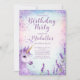 Cute Purple Rainbow Glitter Floral Unicorn Invitation