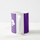 Beautiful purple mug which features a cute cheerful rainbow with fun white clouds on a pretty violet background. Customize with a name for a great LGBT gift.