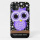 Cute purple spotted owl custom iPhone 4/4S Case-Mate cases and gifts for owl lovers, bird lovers and birders. Owl with starry night background. Unique, colorful and cool owl gifts for birthdays, Christmas or any occasion. This owl design is available in several different colors! You can personalize the phone cases by adding your name.
