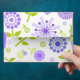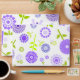 Gorgeous, colorful design featuring retro style drawing of flowers and leaves on a light background. Modern and retro pattern in purple and white. Sweet, elegant and stylish gift for every woman.