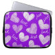 Cute Purple White Scribbled Heart with Love Script Laptop Sleeve