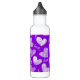 Cute Purple White Scribbled Heart with Love Script Water Bottle