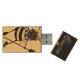 Cute Queen bee illustration wood USB flash drive. Honeycomb pattern background as well as text can be customized.
