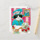 Cute Queen Elizabeth Cat Mouse Tea postcard