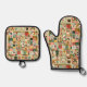 Oven mitt and pot holder set featuring a retro quilt or patchwork design with a Christmas theme. Great to create a cozy holiday atmosphere in the kitchen.