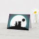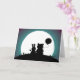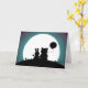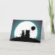Sweet wedding congratulations greeting card with the silhouettes of a rabbit and bear holding a balloon sitting on a hill looking at the moon. Personalize the text inside to read what you want.
